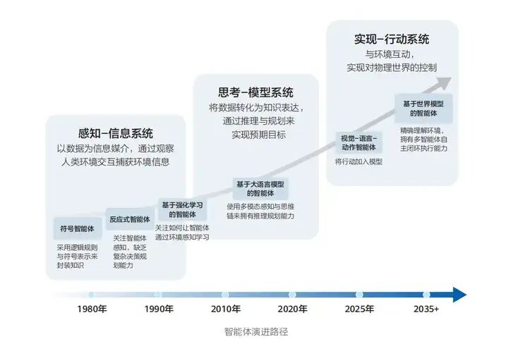 《智能世界 2035》报告指出,当前 AI 虽在生成式技术等领域取得突破,但仍处于起步阶段,核心挑战是突破通用人工智能(AGI) 技术瓶颈,关键路径是走向物理世界;报告围绕十大技术跃迁(如 AGI 突破、AI 智能体演进、新型算力构建等)展开,预判 2035 年全社会算力将增长 10 万倍、智能存储需求增长 500 倍,同时详细阐述 AI 在医疗、教育、出行等十大生活与生产场景的变革(如医疗实现 80% 慢性病预防、90% 中国家庭拥有智能机器人),并强调需通过AI 向善、国际合作与绿色可持续(如新能源发电量占比超 50%)应对技术不平衡、伦理安全等挑战,最终构建万物互联的智能世界。