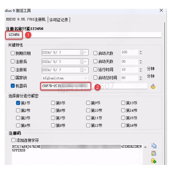①在注册名称框里输入【123456】 ②把刚才复制的机器码粘贴到机器码框里 ③点击【生成注册码】按钮