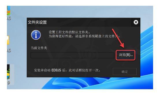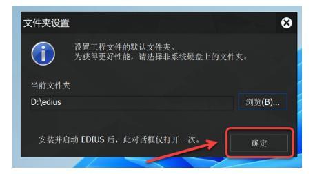 ①选择一个你喜欢的文件夹作为EDIUS的工作目录 ②点击【确定】按钮