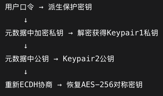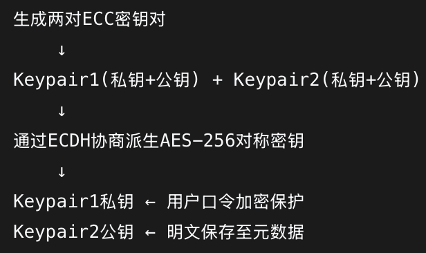 系统采用创新的双ECC密钥对设计,实现前向安全的密钥派生: