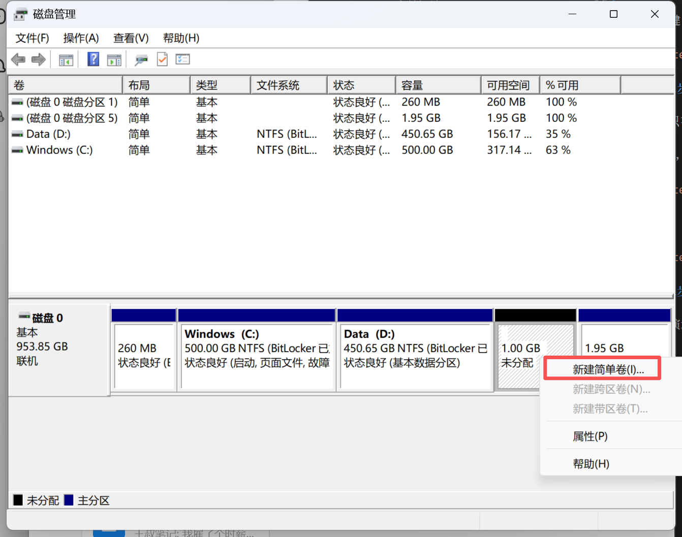 选择【新建简单卷】,如下图