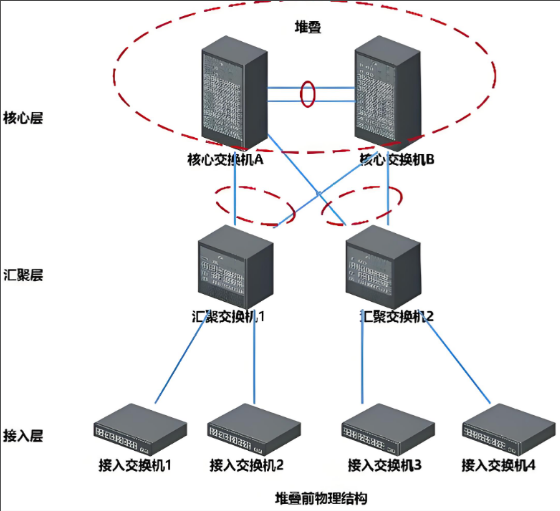 核心层 | 1、网络的高速主干,实现分布层设备间的高速数据转发2、保证高可用性和冗余性 | 极高的转发速率和带宽高可靠性和冗余性(如冗余组件、链路聚合)延迟极低通常使用高性能三层或四层交换机 |