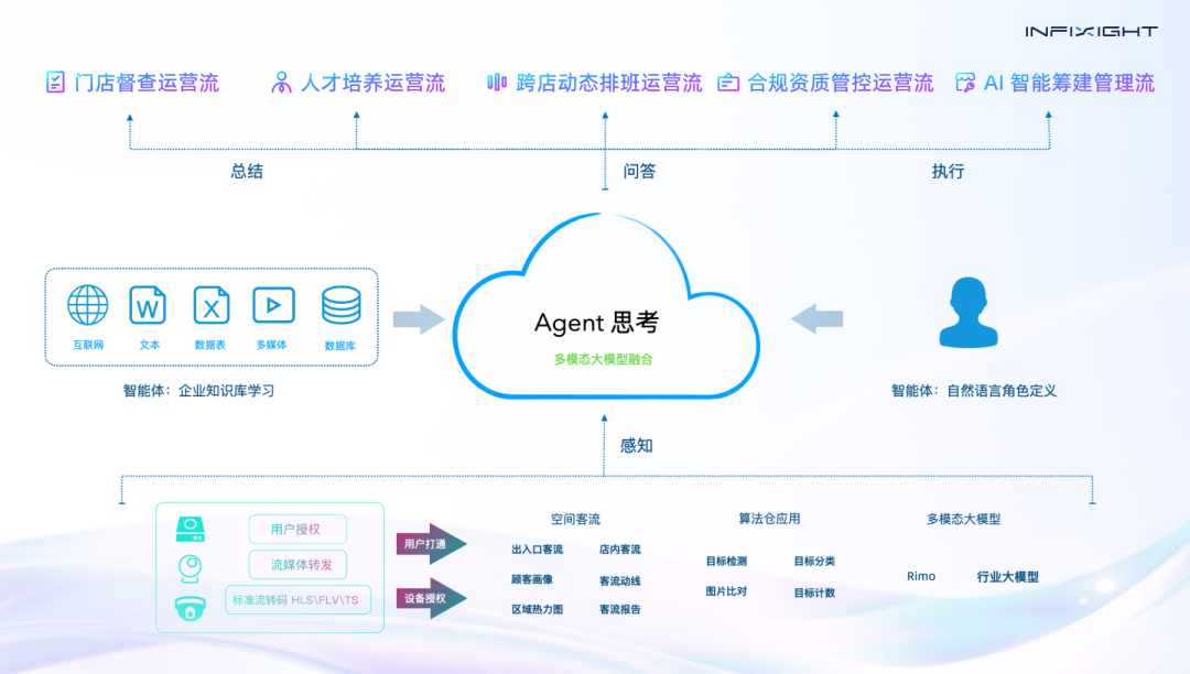 在十大技术跃迁的推动下,制造、能源、商业服务、医疗、教育等多个行业正在飞速进行 AI 原生化重构。 而在这场宏大的智能演化中,InfiSight 智睿视界正让未来率先在连锁商业中落地: 每一家连锁门店都能自主感知、分析与决策,实现跨区域协同与自驱动运营,成为 AI Agent 驱动的智能经营单元。