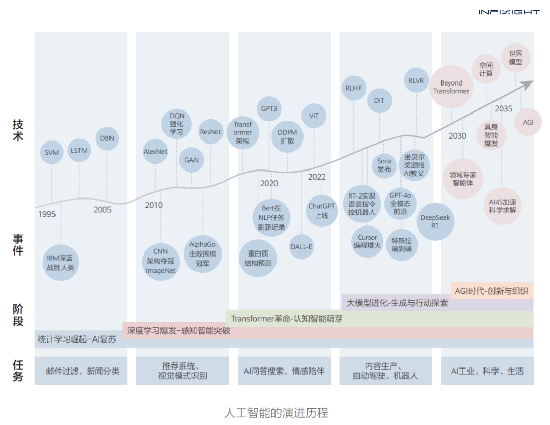 其中,最具代表性的五大跃迁,正在为千行百业打开全新想象空间: AI的不断发展同时,未来我们将能够将其从目前的助手形态推向更高的伙伴AI的形态,即将具备明确的目标、与之相适应的复杂的情境以及记忆的AI作为我们的决策的同事,能自主地管理科学的实验、运营的系统、生产的线等。