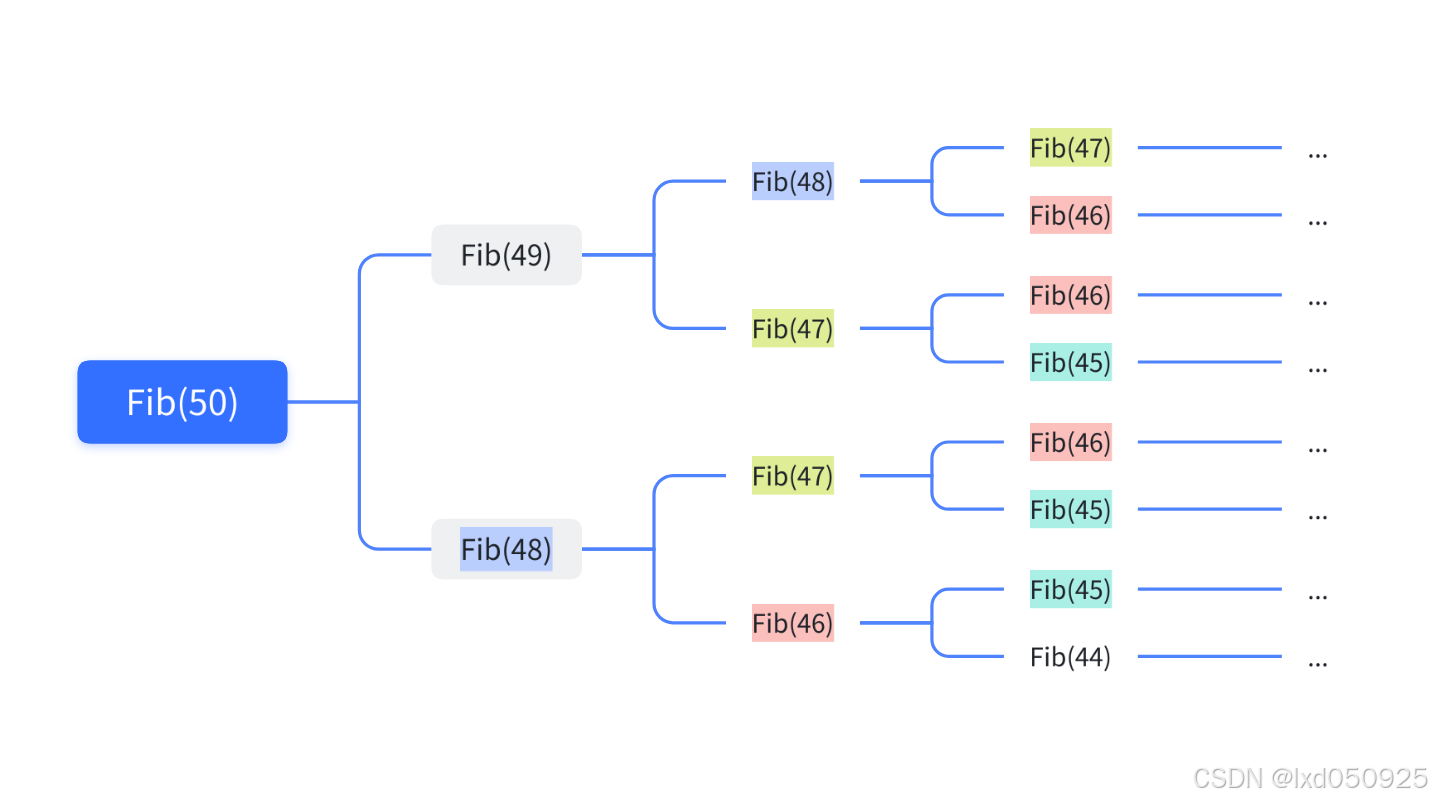 某些递归算法(例如斐波那契数列)会重复计算相同的子问题,效率低下。