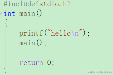 上述是一个简单的递归程序,不过是一个错误的示范,代码最终会陷⼊死递归,导致栈溢出。