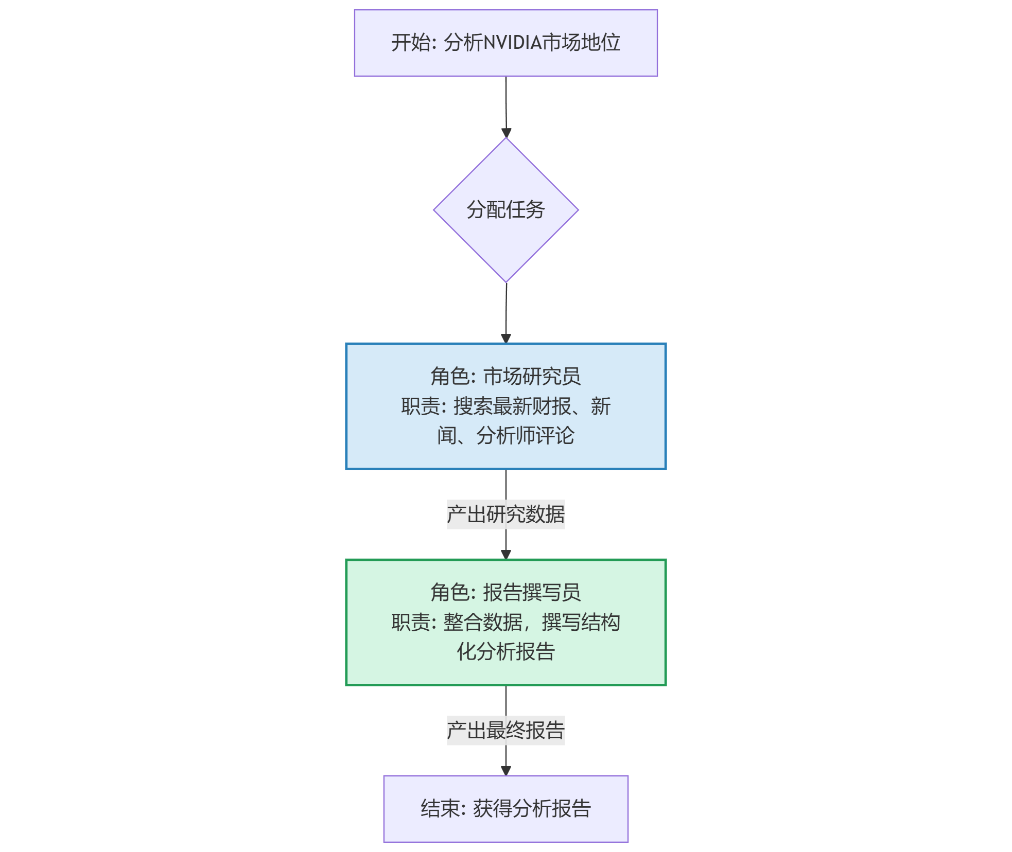 场景: 我们来组建一个“市场分析团队”,由一名“市场研究员”和一名“分析报告撰写员”构成。