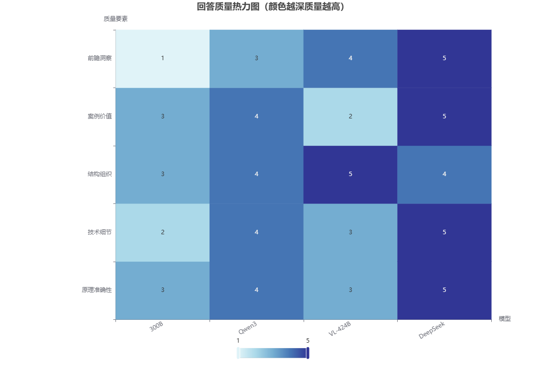 根据上面给出的结果,结合关键性能指标、内容质量、评测维度分析,可以得出模型对比测评: