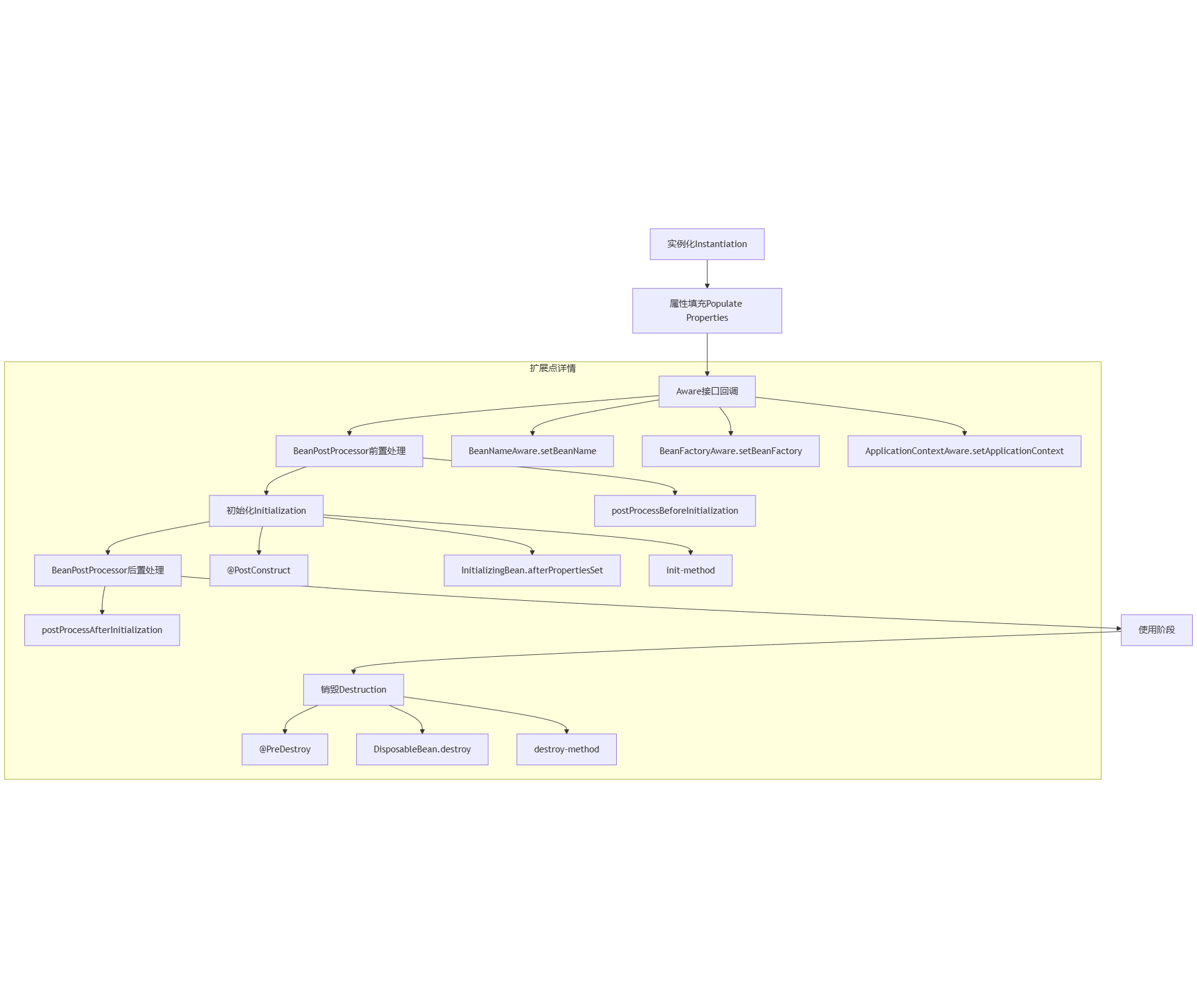 销毁回调 | @PreDestroy /DisposableBean | 容器关闭时 | 资源释放、连接关闭 |