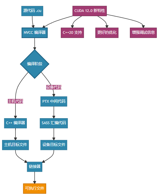 图1:CUDA 12.0编译流程图 - 展示新编译器的处理流程和优化特性