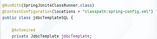 在使用jdbc模板前,你需要先注入jdbcTemplate 我这里用的注解,也可以直接用ClassPathXml….的方式获取jdbcTemplate 如图: