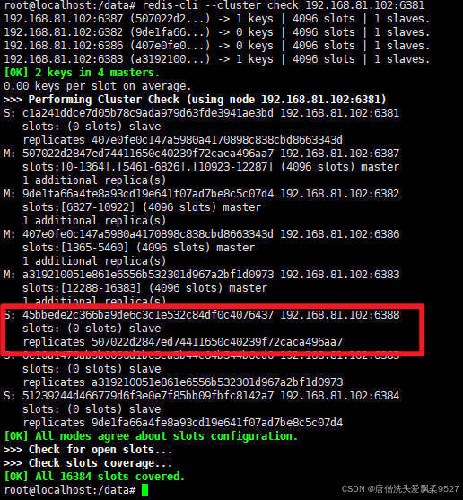 M: 507022d2847ed74411650c40239f72caca496aa7 192.168.81.102:6387 slots: (0 slots) master