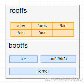 bootfs(boot file system)主要包含bootloader和kernel, bootloader主要是引导加载kernel