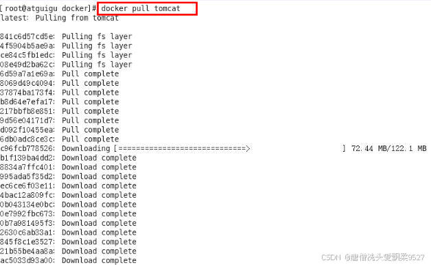 以我们的pull为例,在下载的过程中我们可以看到docker的镜像好像是在一层一层