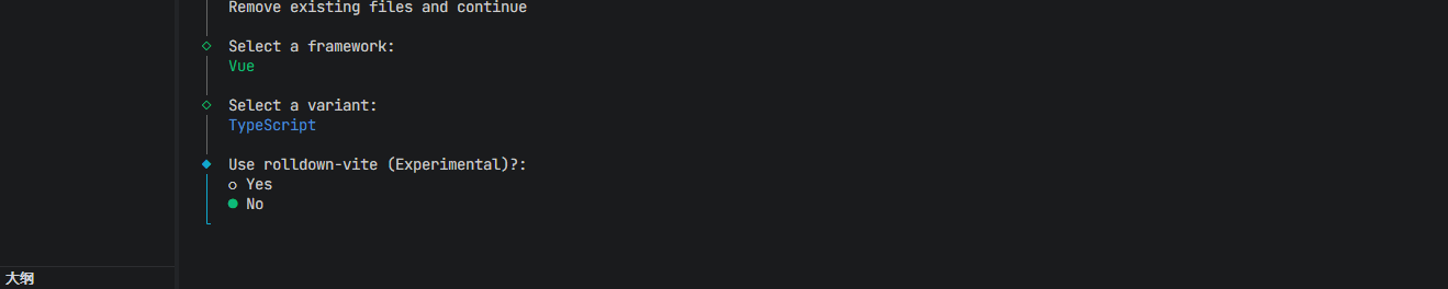 npm create vue@latest -- --yes选择 No 会让你继续使用经过充分测试的 Vite + Rollup 组合,这是目前最稳定可靠的选择。
