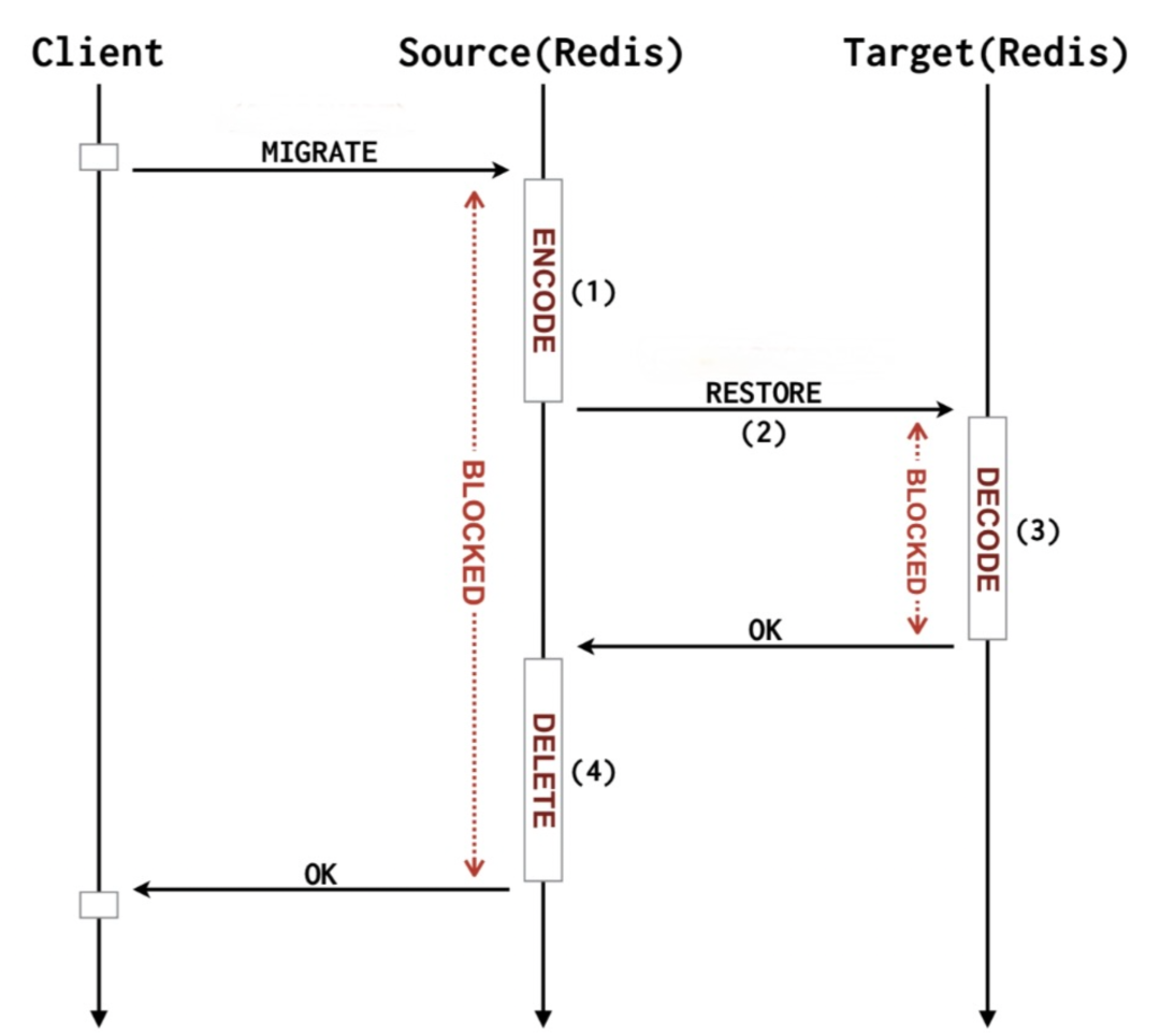 ▲图4. MIGRATE 命令在执行过程中对源节点和目标节点的阻塞