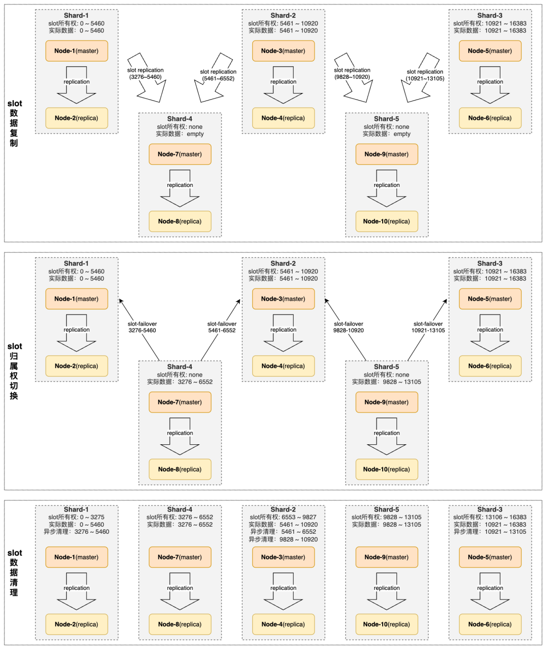 2. 源节点的复制连接对象中增加了相应的字段,保存指定的slot范围。