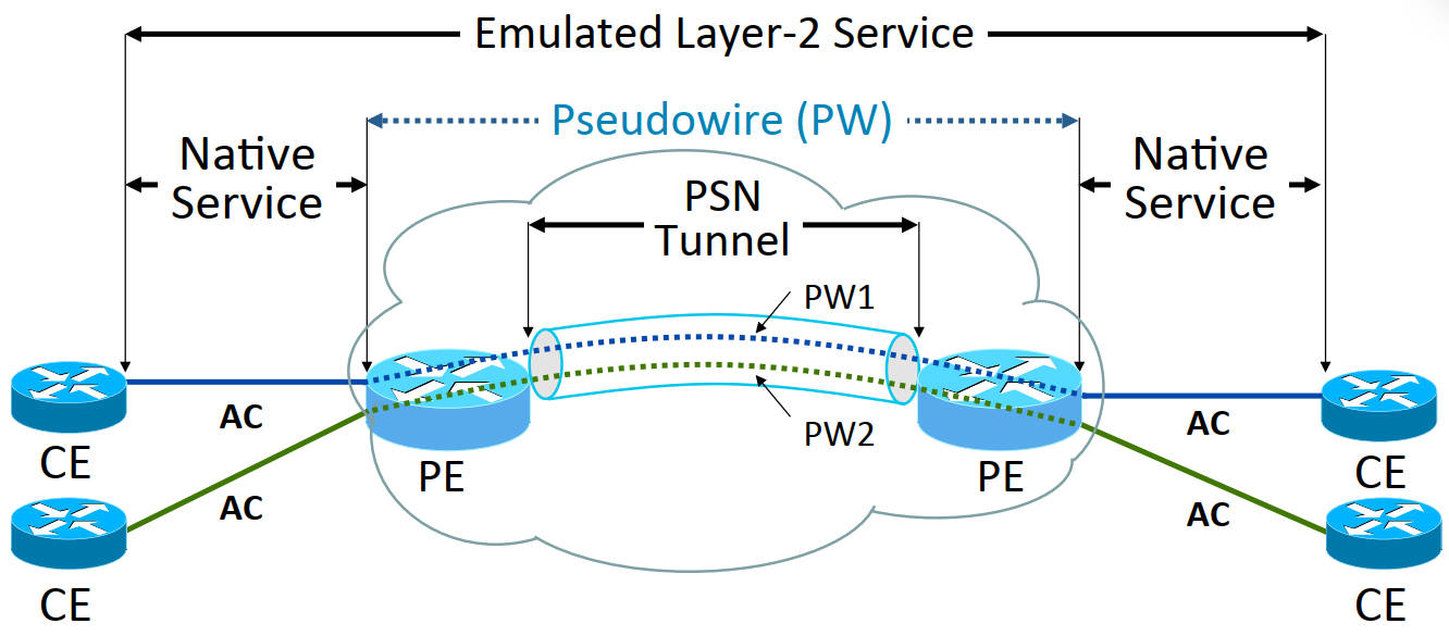 • Emulated Layer-2 Service:由运营商提供的虚拟服务,是物理直连的替代。
