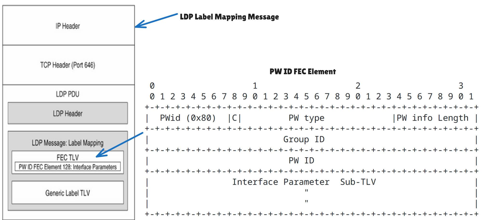 在RFC 4447使用LDP来建立和维持伪线的标准中,指定了3种新的TLV,2种新的FEC组件和一些新的错误代码。