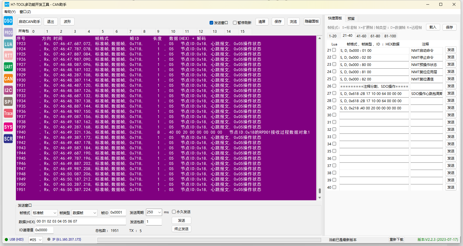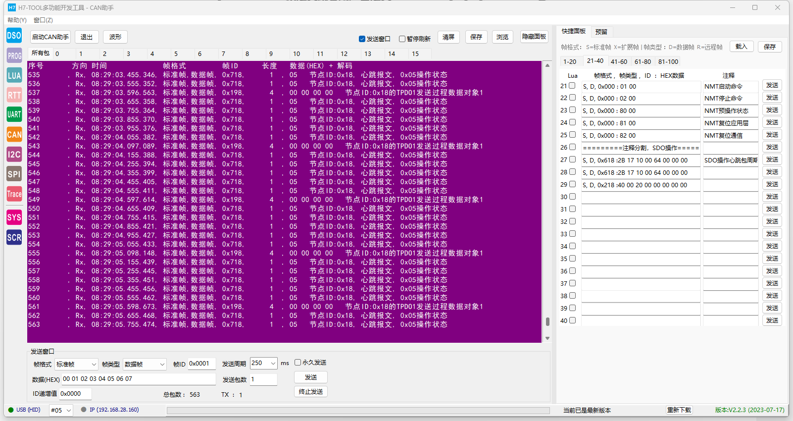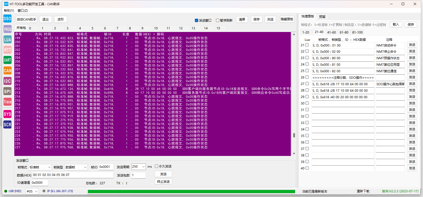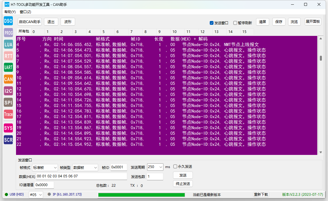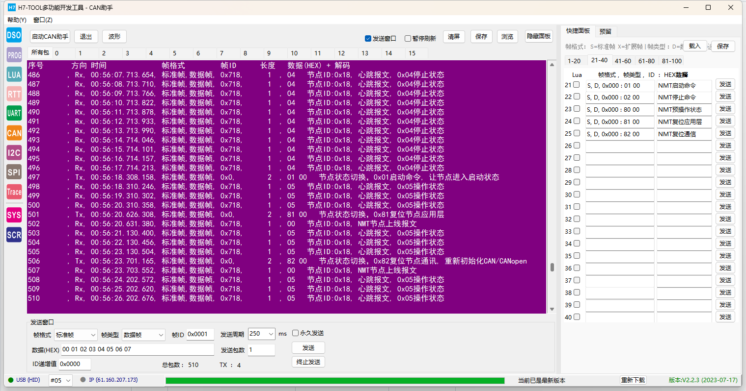 初步完成H7-TOOL的CANFD/CAN助手的CANopen数据解析功能