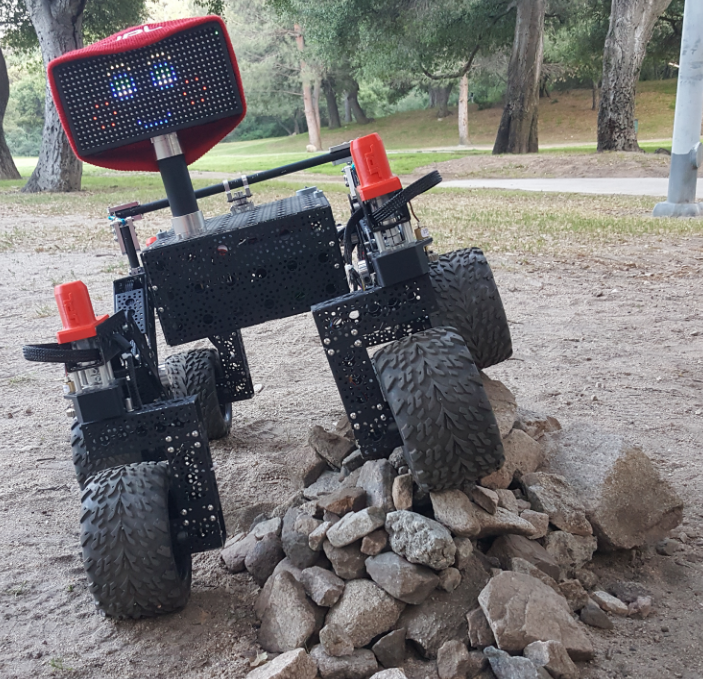 第1版探测车是2018年发布,小车带有Rocker-Bogie悬挂系统,在非常崎岖的地形上移动时,六个轮子可以依然保持在地面上。