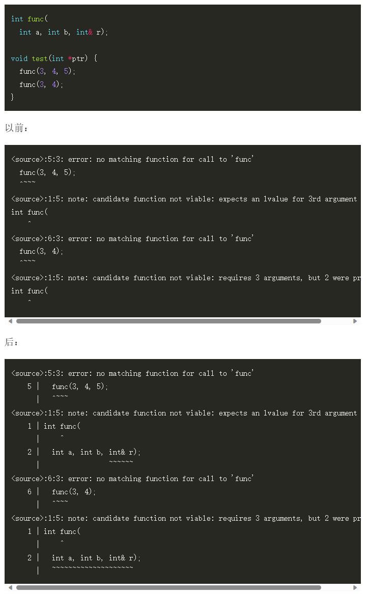 加强错误诊断功能,比如执行下面简单测试,之前和当前的对比