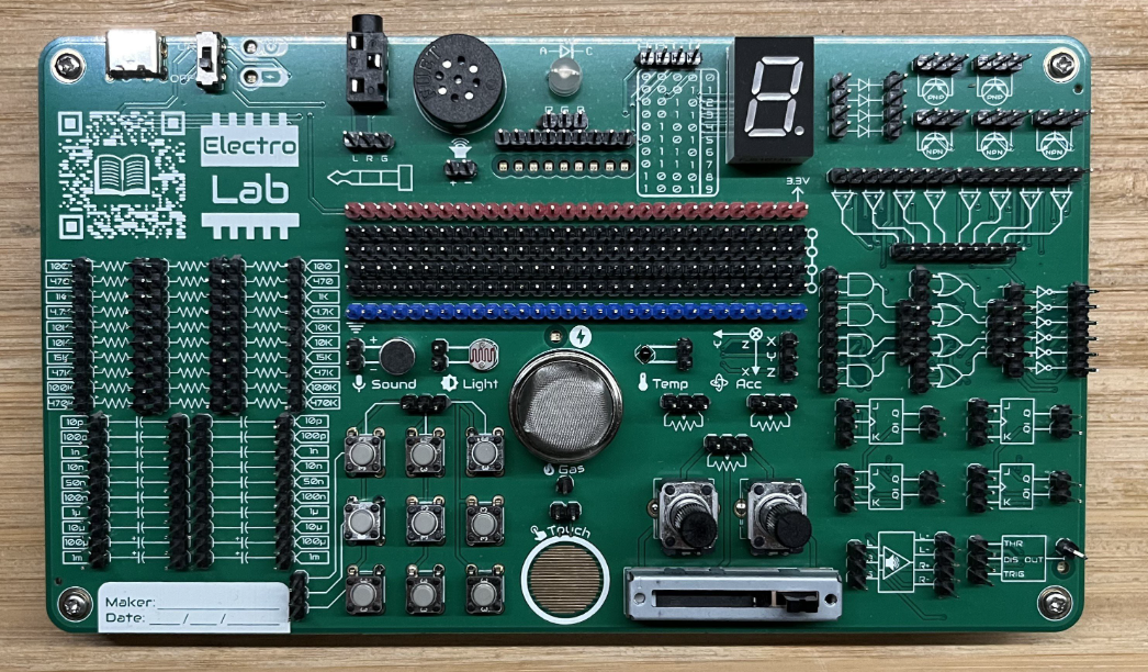 非常适合用于电子技术初学阶段的学习使用,板子上面没有带MCU,纯电子电路实现。