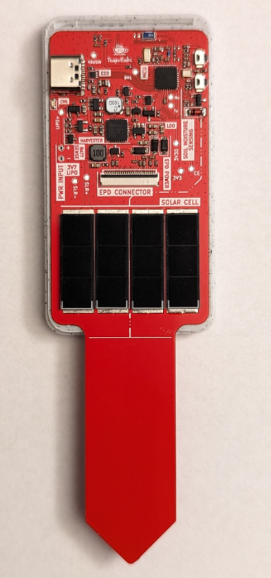 设备使用电容式传感来测量土壤湿度。低功耗电子纸在不消耗能源的情况下随时了解最新情况。此外,借助 BME688 传感器,它能够监测空气质量和 CO2 水平。