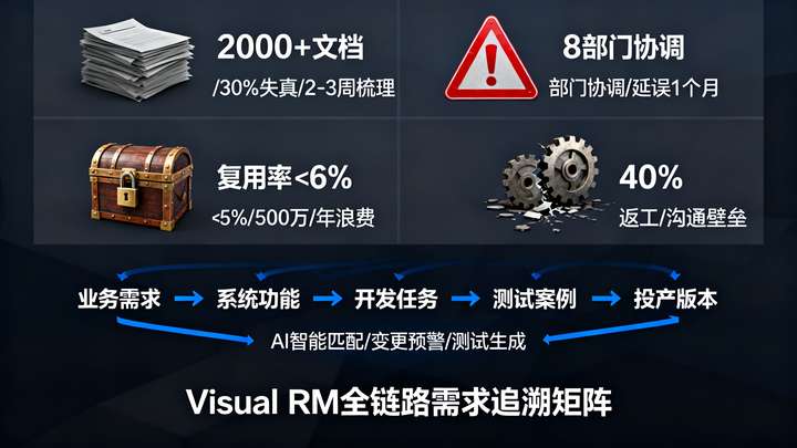 传统需求管理模式下,需求从提出到落地的全流程漏洞频发,这些顽疾直接催生了 Visual RM 需求追溯矩阵的研发与应用: