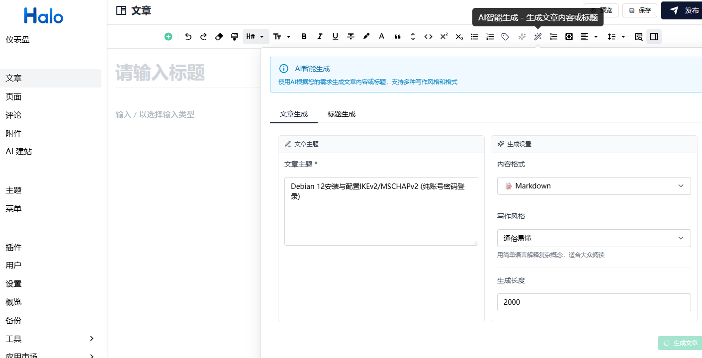 特色还是用来没事生成文字,内置AI创作可以生成标准的Markdown格式。 后来用来同步各个网站非常容易。
