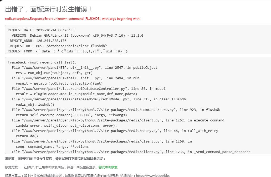 总结: 至此,面板折腾结束,通过安装1P大致感受了与宝塔的差异。 真心话说,小白用宝塔挺合适。顶多面板出现Py错误提示 但功能依然用,不上面板就得了。
