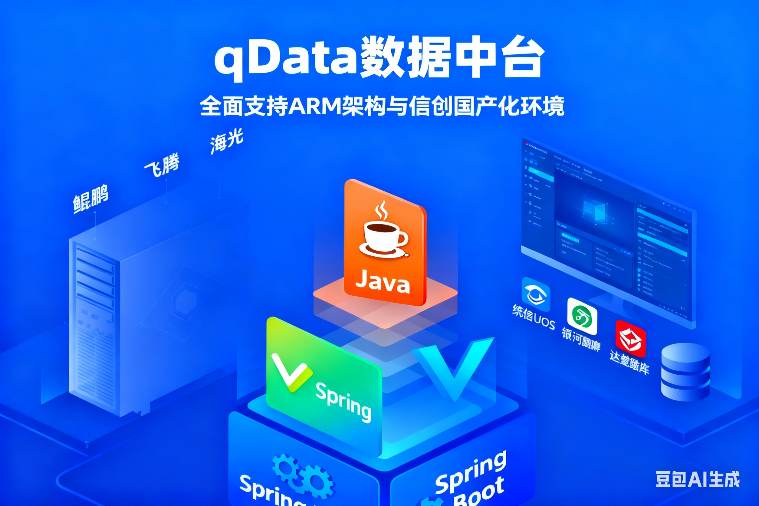 在国产化与信创体系持续深化的背景下,qData 商业版和开源版已完成在 ARM 架构服务器(包括鲲鹏、飞腾、海光等)以及 信创软硬件生态(涵盖统信 UOS、银河麒麟、达梦数据库等)上的兼容性验证与适配工作。该系统能够在国产软硬件环境下保持性能稳定与功能完整,支持多场景灵活部署与运维。