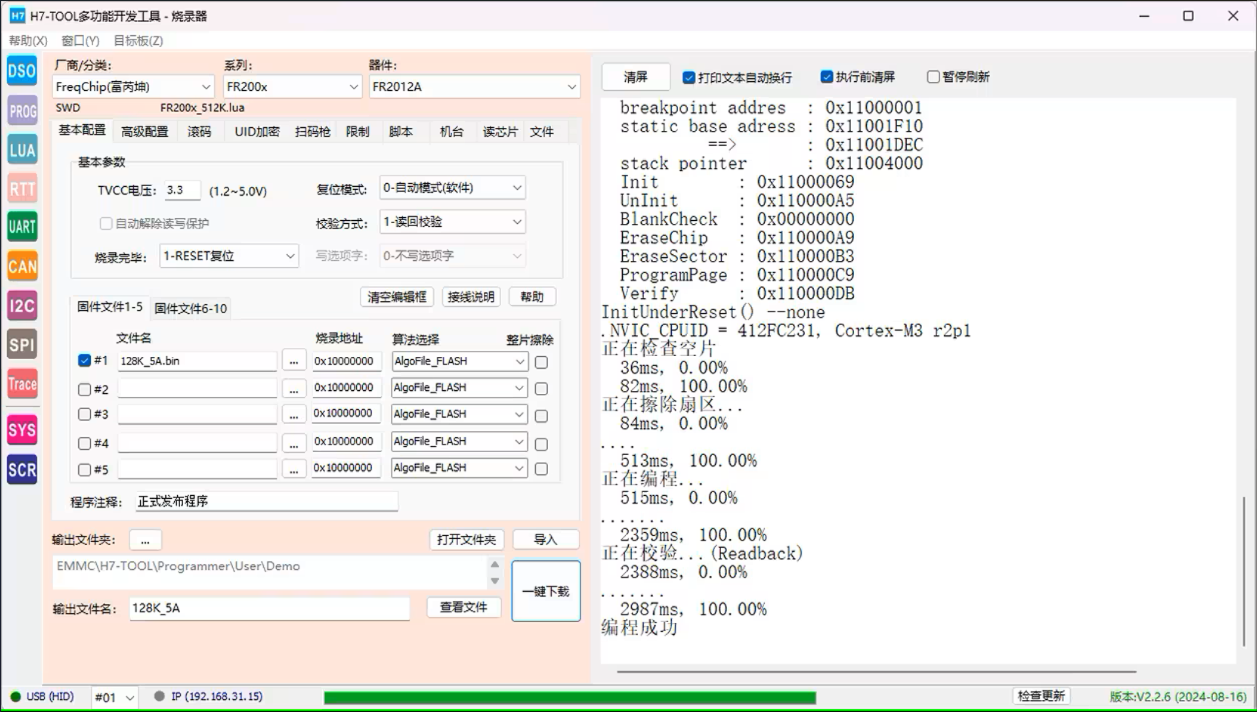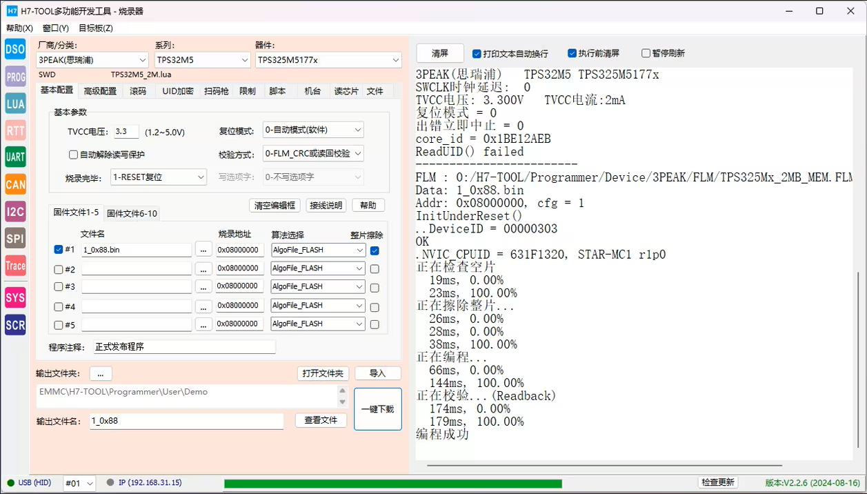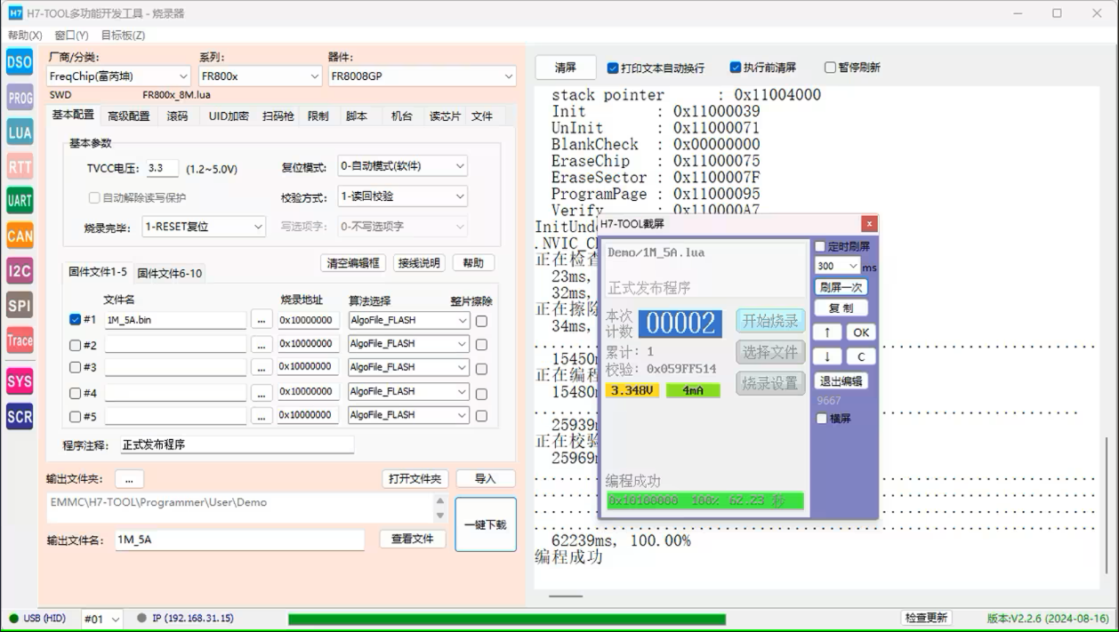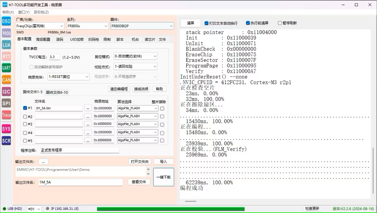 1、在线烧录,脱机烧录均正常。 2、注意事项:推荐使用整片擦除。