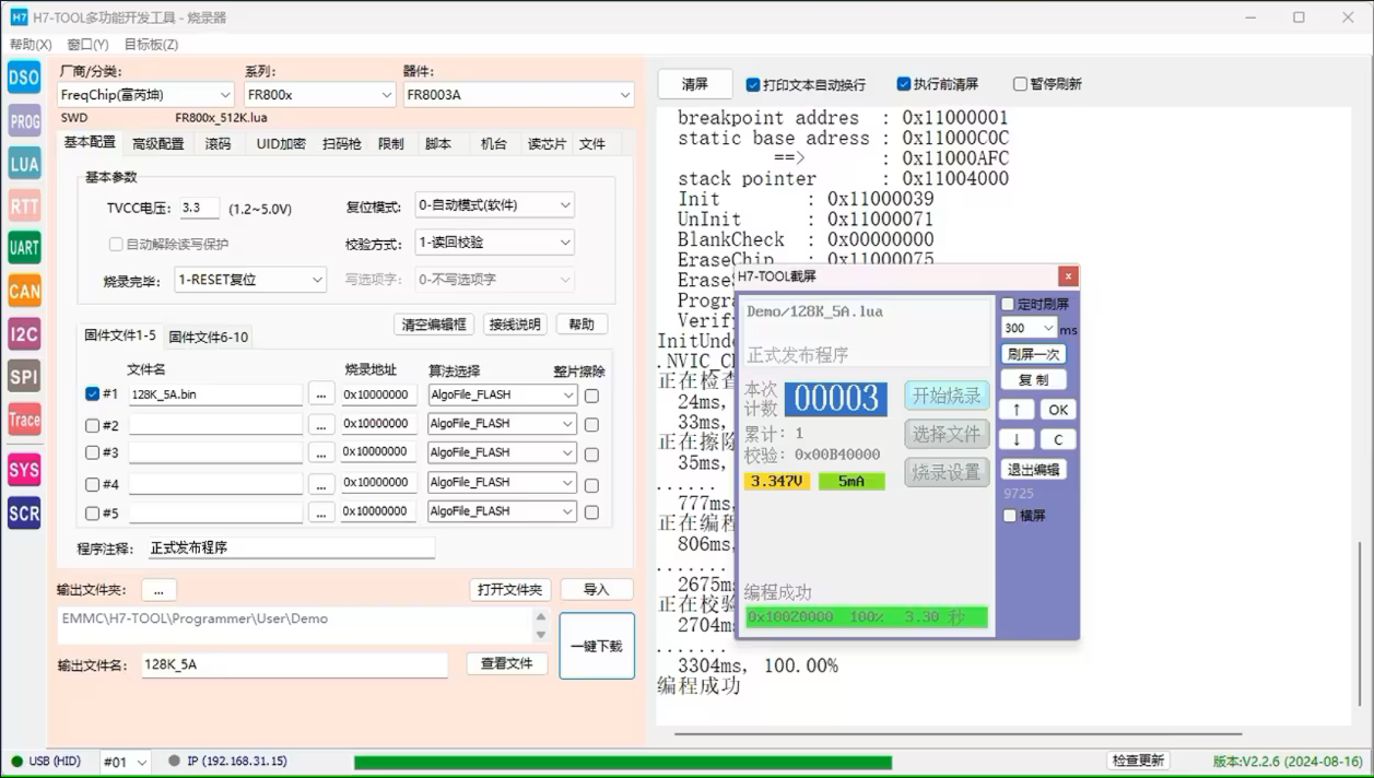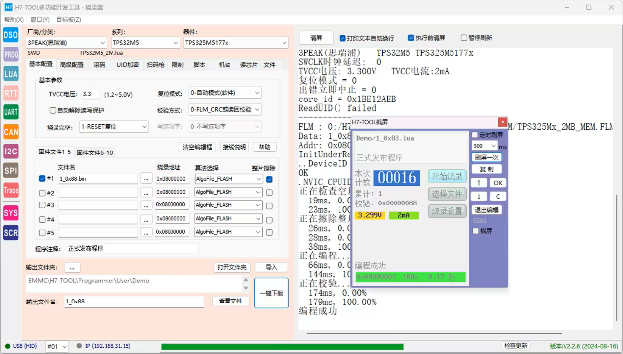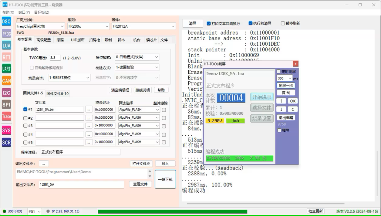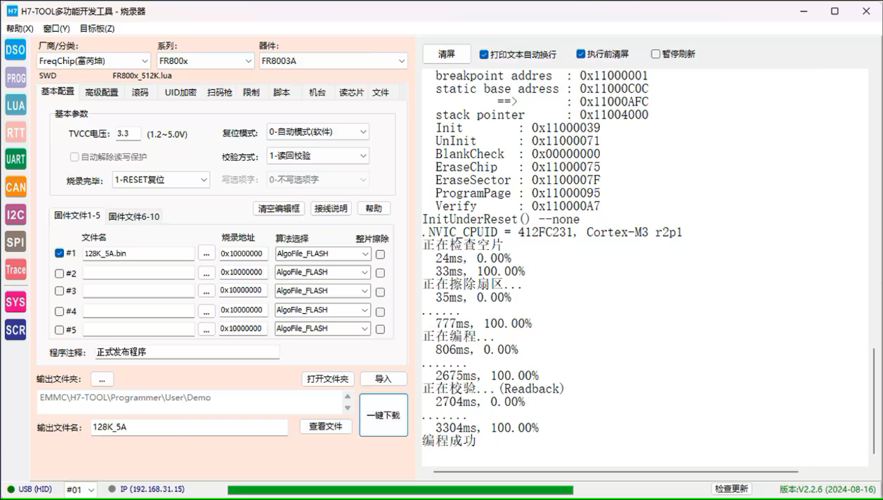 1、在线烧录,脱机烧录均正常。 2、注意事项:推荐使用整片擦除。