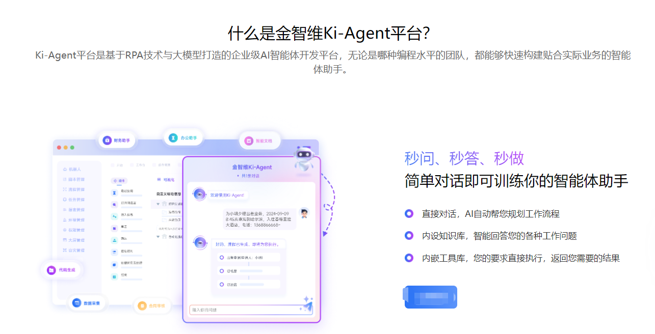 金智维走的是务实路线,把AI用在最难啃的场景上,比如大型银行、运营商的老旧系统。这些黑底绿字的界面,对传统RPA几乎是“死角”。金智维Ki-AgentS企业级智能体能让AI具备类人的任务识别、业务理解与自动化操作能力,结合可复用流程模板设计,大幅缩短企业级AI业务流程的开发周期。在强调数据安全的场景下,还支持私有化部署,方便审计追溯。