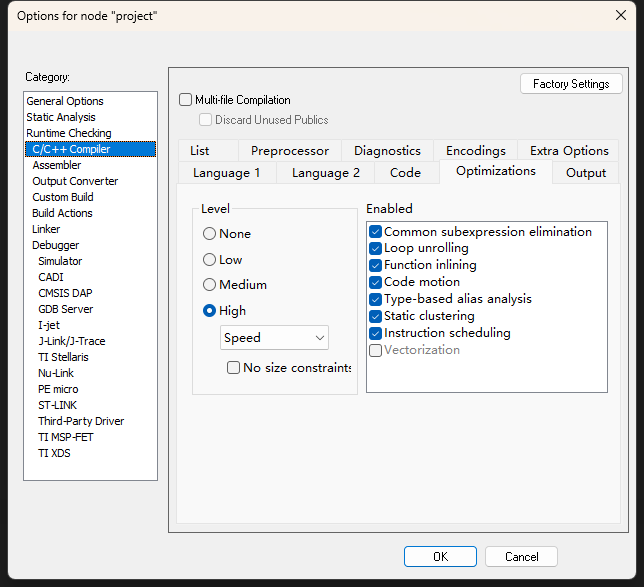 测试了IAR,所有优化等级均正常: