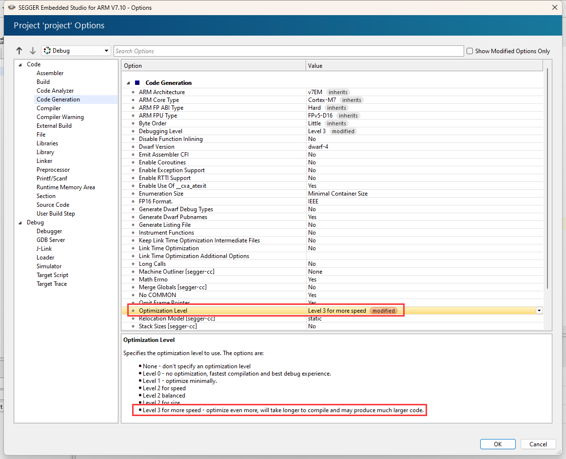 Embedded Studio开最高速度优化Level3 for speed,测试正常: