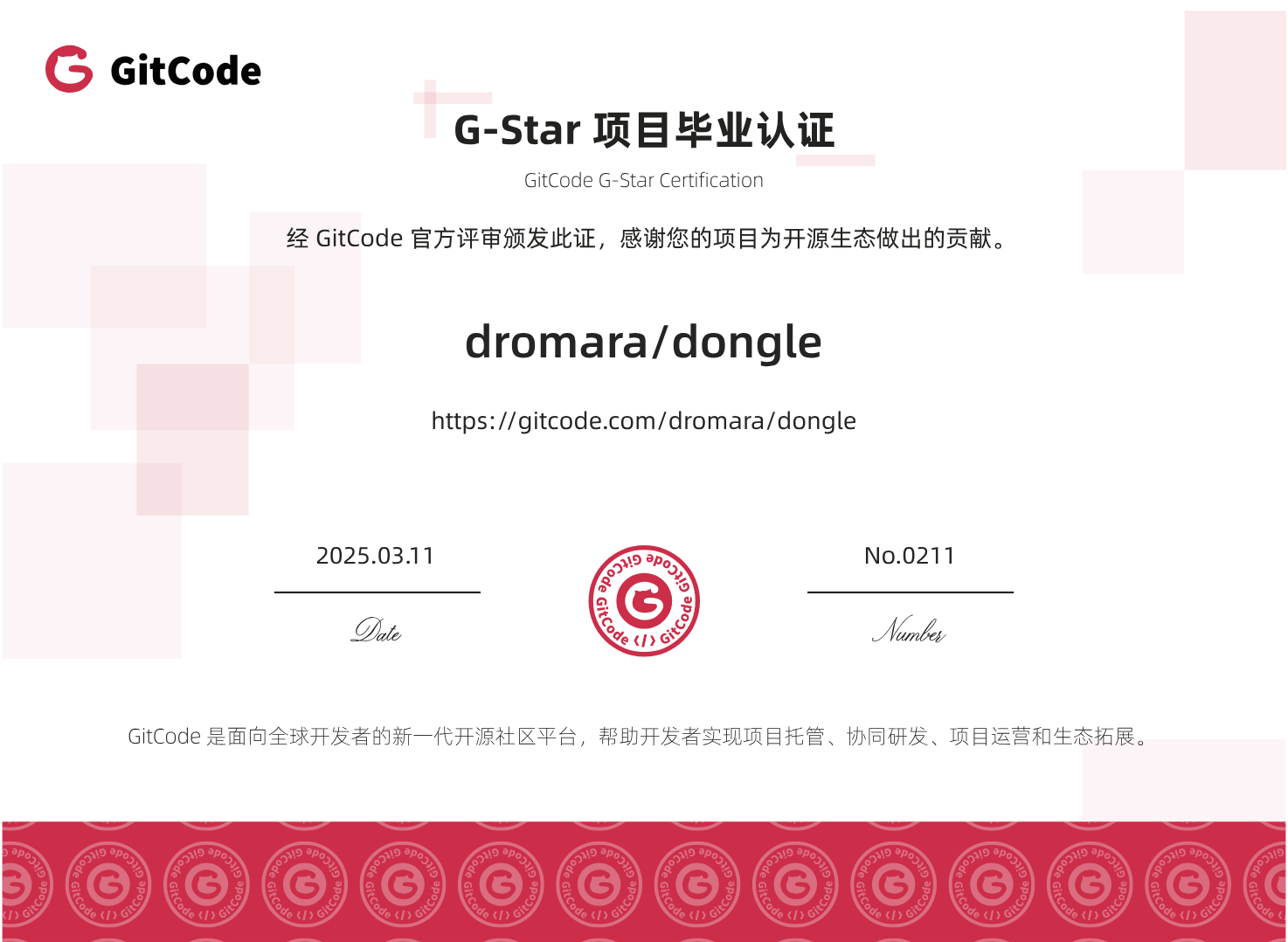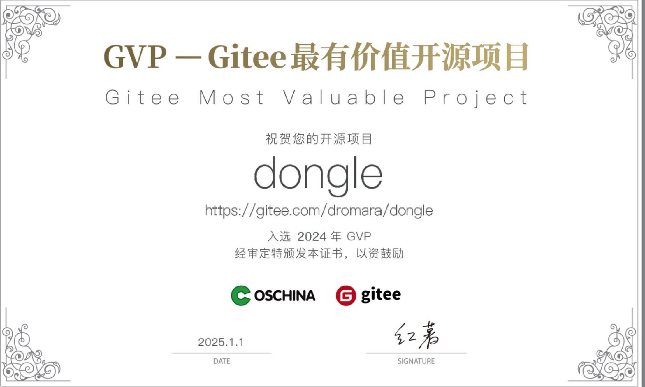 dongle 是一个轻量级、语义化、对开发者友好的 Golang 密码库,100% 单元测试覆盖率,已被 awesome-go 收录 ,并获得 gitee 2024 年最有价值项目(GVP)和 gitcode 2024 年度 G-Star 项目,如果您觉得不错,请给个 star 吧