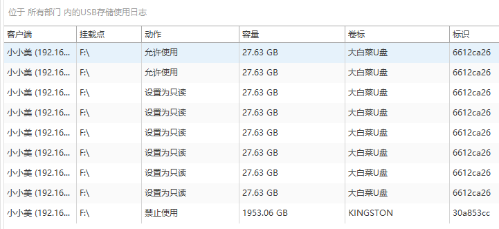 系统自动记录每一次U盘的接入与拔出行为,包括设备名称、序列号、使用时间、操作终端及用户账号等信息。管理员可在后台查看详细的U盘使用日志,及时发现异常接入行为,实现对移动存储设备的全程可追溯管理,满足审计与合规要求。