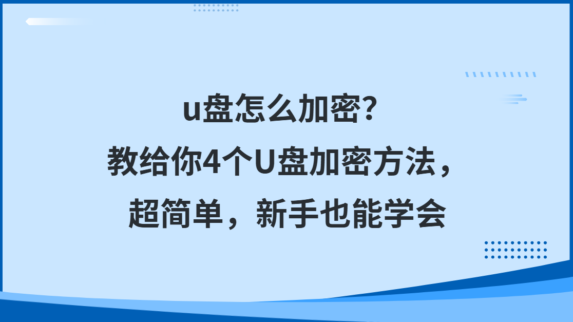 u盘怎么加密?别慌!今天就教大家4个超简单的U盘加密方法,连电脑小白也能5分钟上手,让你的数据安全“固若金汤”。