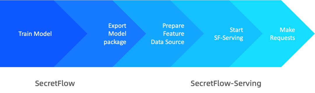 基于本次 SecretFlow-Serving 的发布,隐语提供了隐私计算从离线训练到在线预测的完整工作流,同时该能力也在 SecretPad 中进行了实现,用户可以通过 SecretPad 或者直接使用 SecretFlow 与 SecertFlow-Serving 完成工作流。