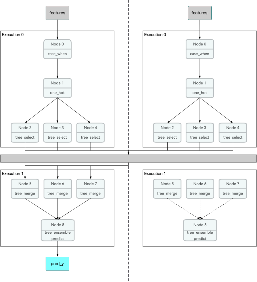 在模型表示上,SecretFlow-Serving 设计了一套隐私保护推理模型图定义,在支持存储模型数据的同时也能够对多方模型推理的调度与计算过程进行描述,以此实现对不同隐私计算技术路线的模型推理算法的支持,同时基于此定义,使用者可以自行构建隐私计算推理模型并使用 SecretFlow-Serving 进行模型推理预测。