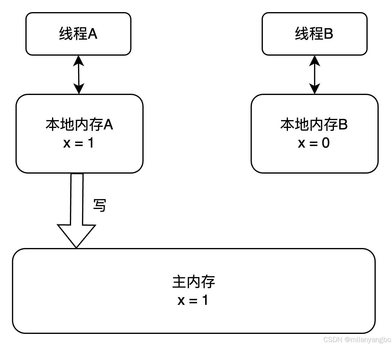 }假设线程A执行set()方法,随后线程B执行get()方法。