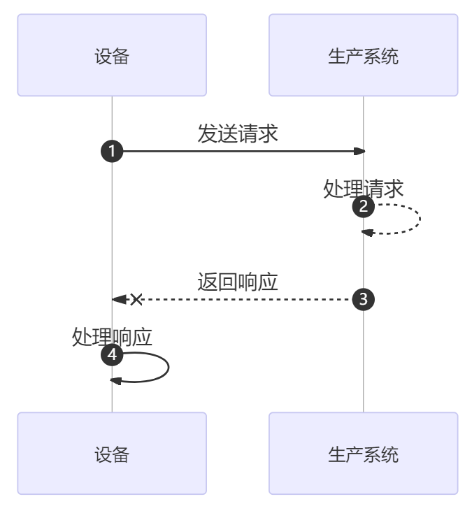 推测是整个生产流程中的第③步设备接收响应时出了问题: