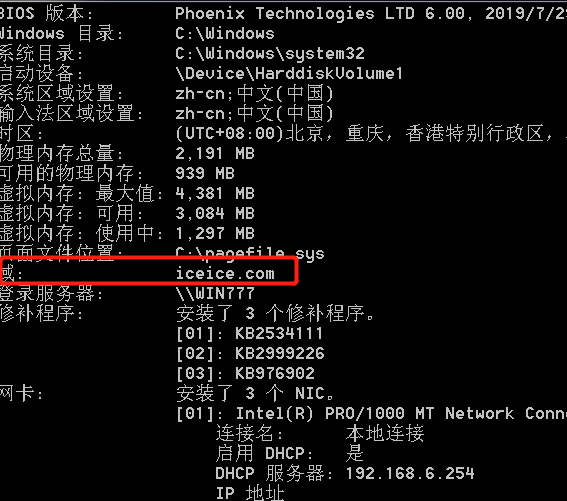 加入域中的主机,使用 systeminfo 命令可以看出来,如图: