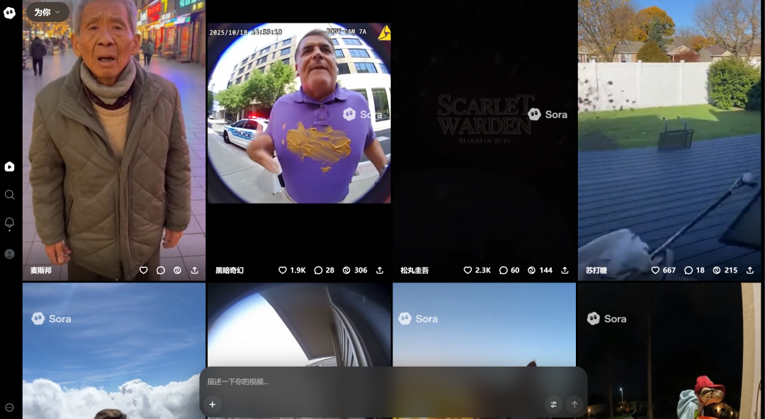 今年9月,Sora 2登场,不仅整合了音视频统一建模和动态光照控制,还新增 “Cameo”功能,让用户可以直接把自己嵌入生成的世界中。