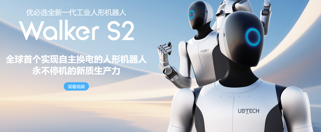 优必选 Walker S2具备灵巧双臂与自主换电功能,更贴近工业执行场景;