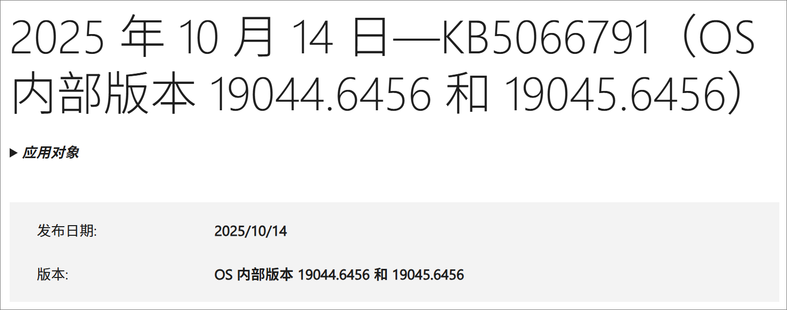 映像已集成至2025年10月14日更新补丁,安装后版本号为19044.6456