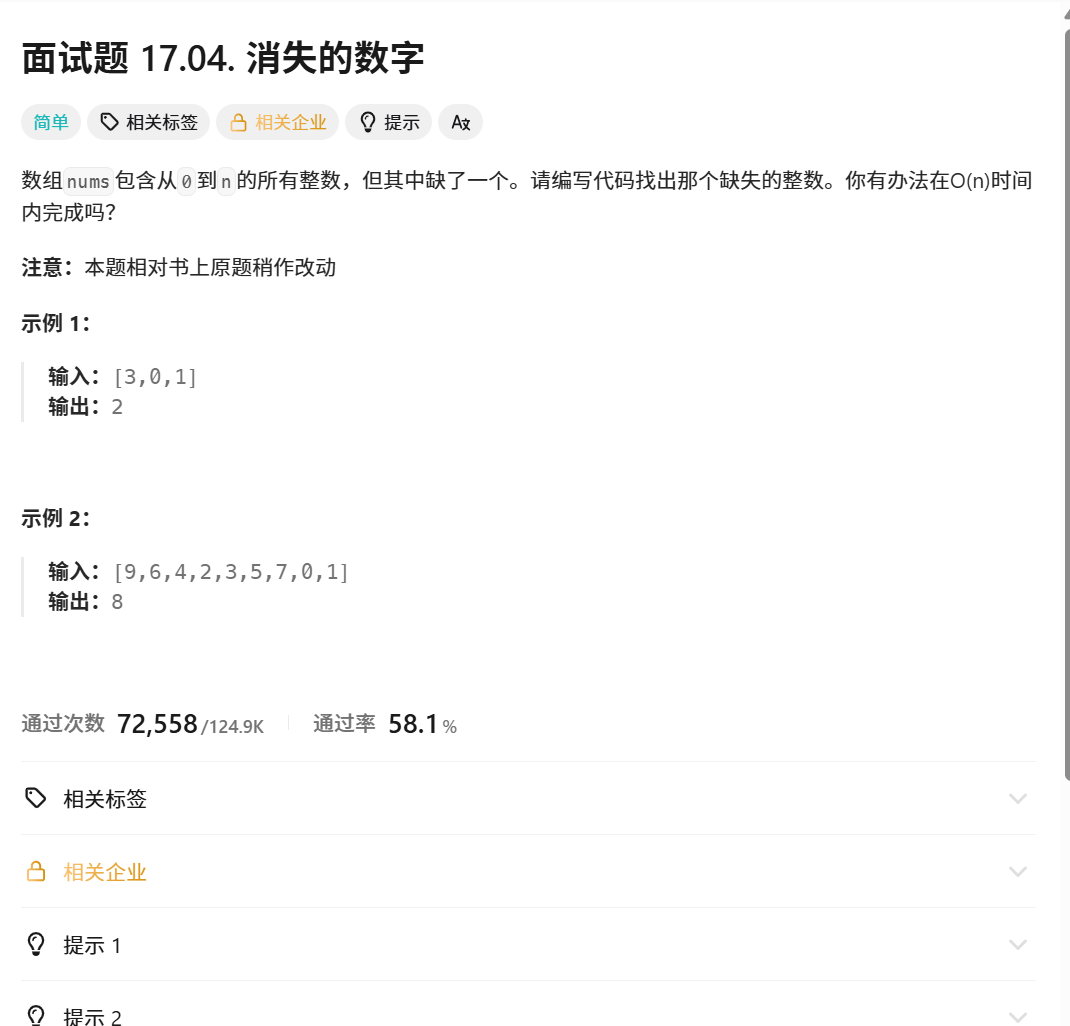 int missingNumber(int* nums, int numsSize)