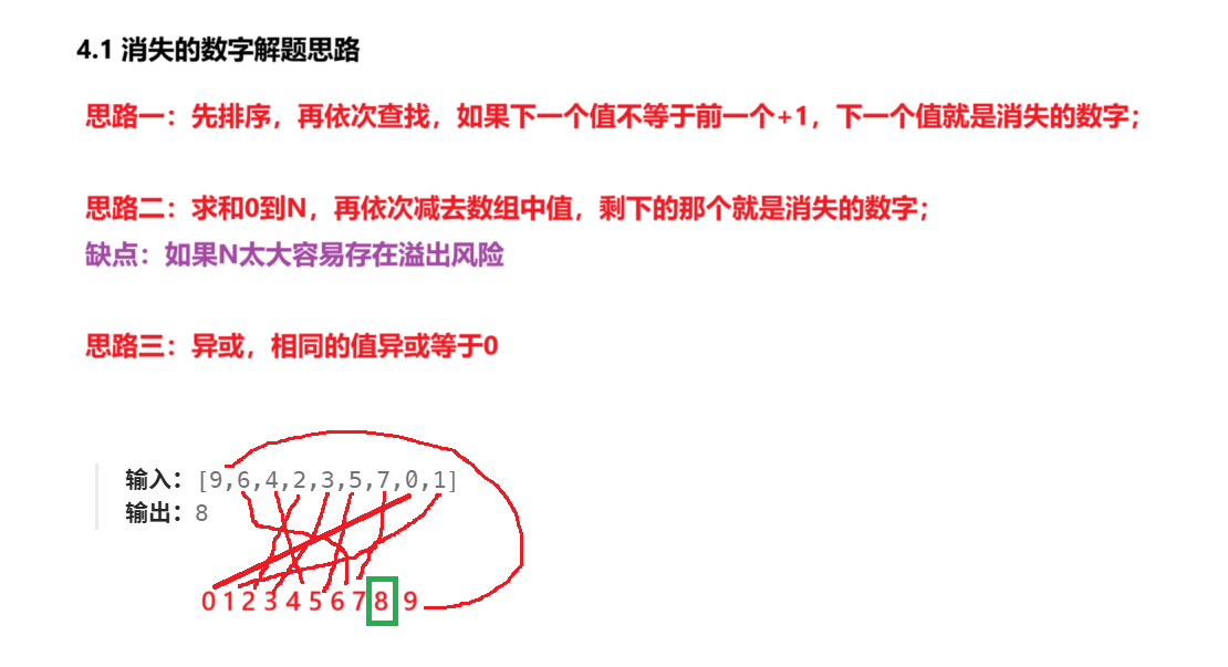 int x=0;//x用于通过异或来找出消失的数字